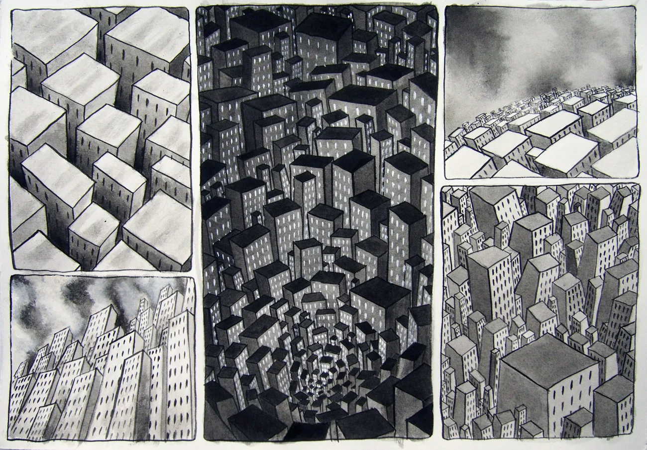 Città di Città (s.l.E), china su carta, cm 35 x 50, 2015