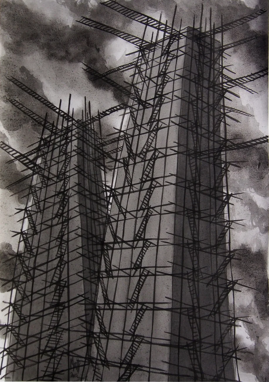 Torri di Volo (A), china su carta, cm 50 x 35, 2015