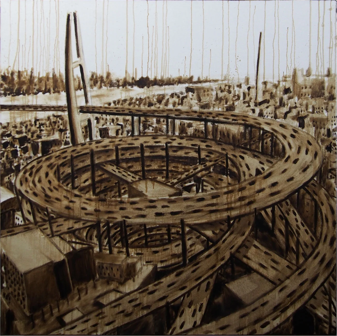 Torre Inversa (2), olio su tela, cm 100 x 100, 2015